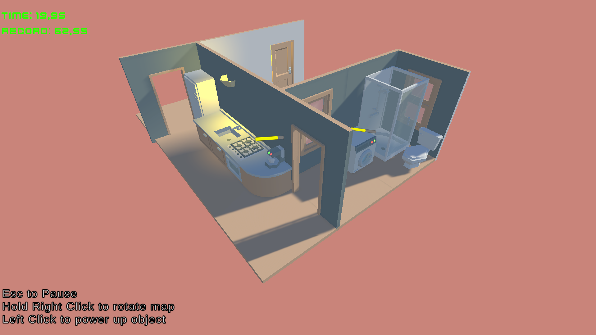 In PowerMouse!, your only tool is your mouse. Rotate the view, find electronic devices around the house, and charge them up before they power down.
